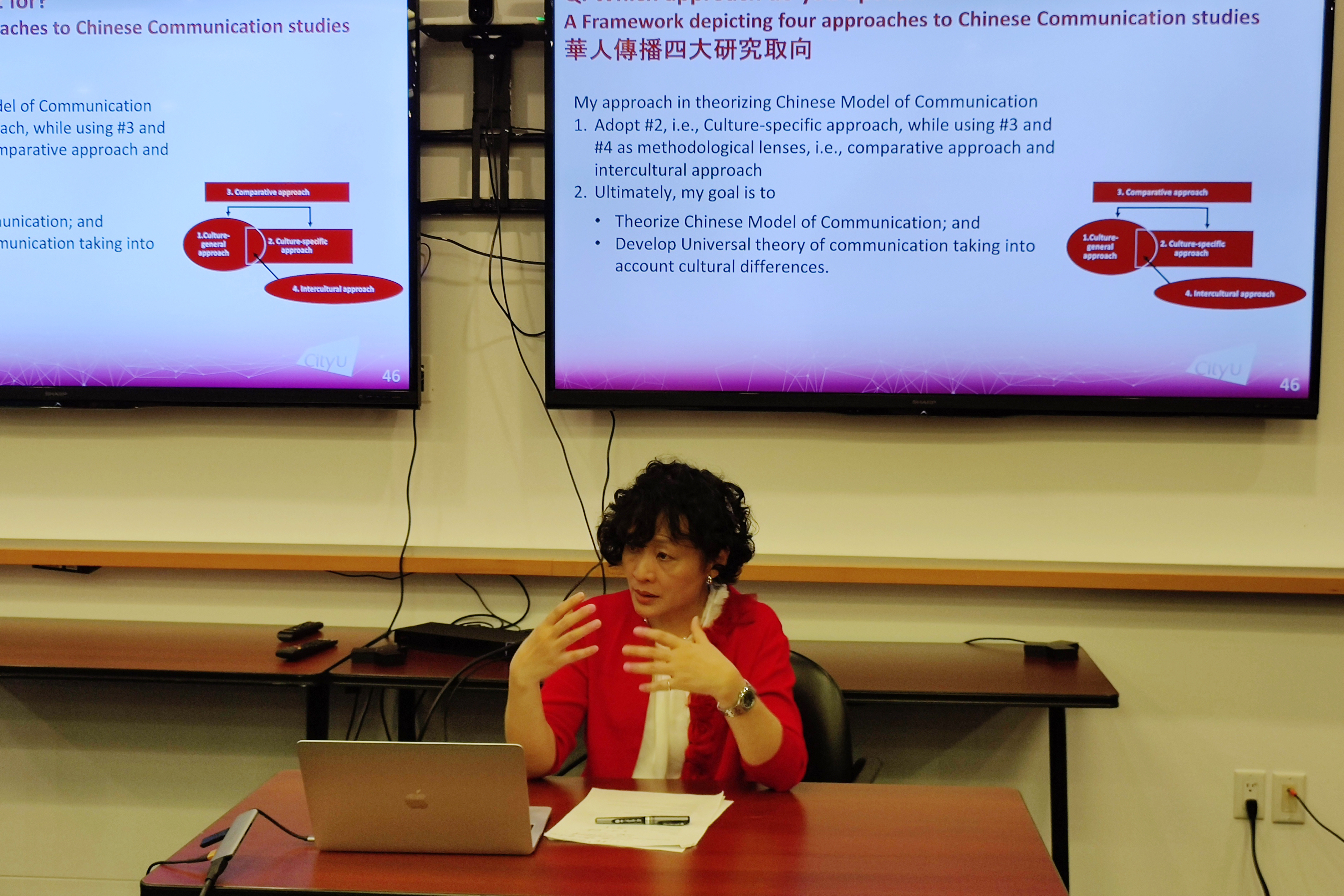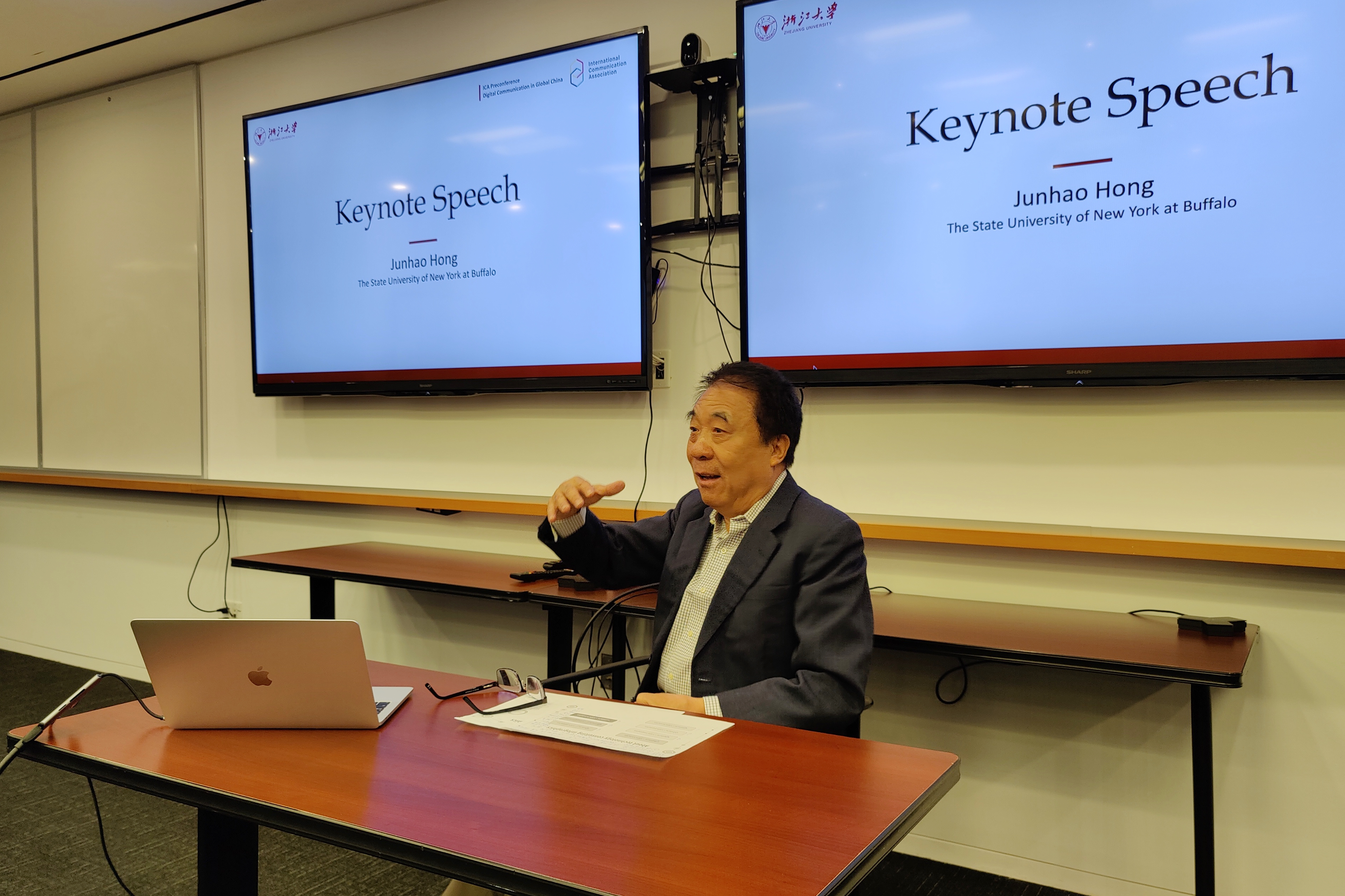 After the opening speech, Prof. Yi-Hui Christine Huang from the City University of Hong Kong and Prof. Junhao Hong from the State University of New York at Buffalo delivered keynote speeches respectively. Prof. Huang introduced four approaches to culture-based communication, which are culture-general approach, culture-specific approach, comparative approach, and intercultural approach. Prof. Huang talked about the strengths and weaknesses of these major research orientations, and discussed in depth whether communication scholars should adopt a theory-centered international approach or a culturally-centered localized approach.