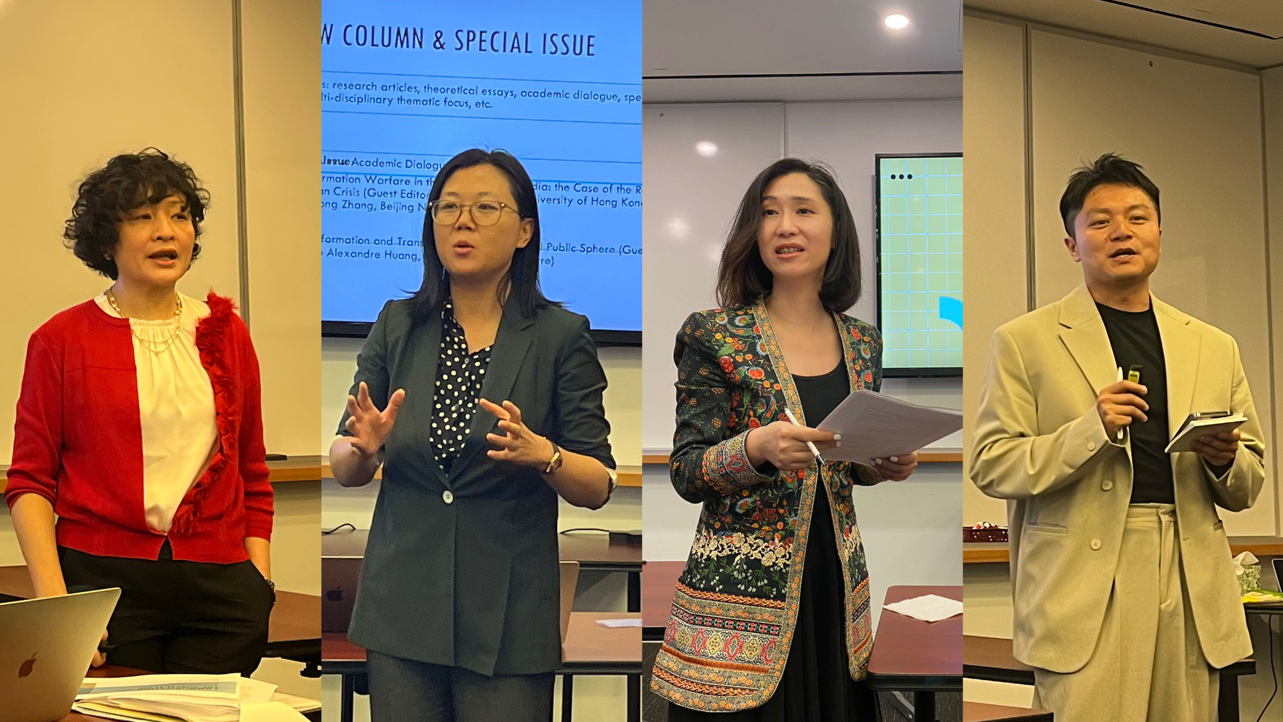 After the panel presentations, Prof. Yi-Hui Christine Huang, Co-Editor-in-Chief of Communication and the Public, introduced the recent development of the journal, stating that the journal has maintained momentum in recent years, with a steady increase in the quantity and quality of submissions and a growing international influence. Professor Yu Hong, Co-Editor-in-Chief of the journal, and Associate Editors Prof. Fen Hong and Prof. Zhao Alexandre Huang, introduced two upcoming special issues: The Information Warfare in the era of Social Media: the Case of the Russian-Ukrainian Crisis and The Platformation and Transformation of the Digital Public Sphere. They welcomed contributions from scholars over the world.