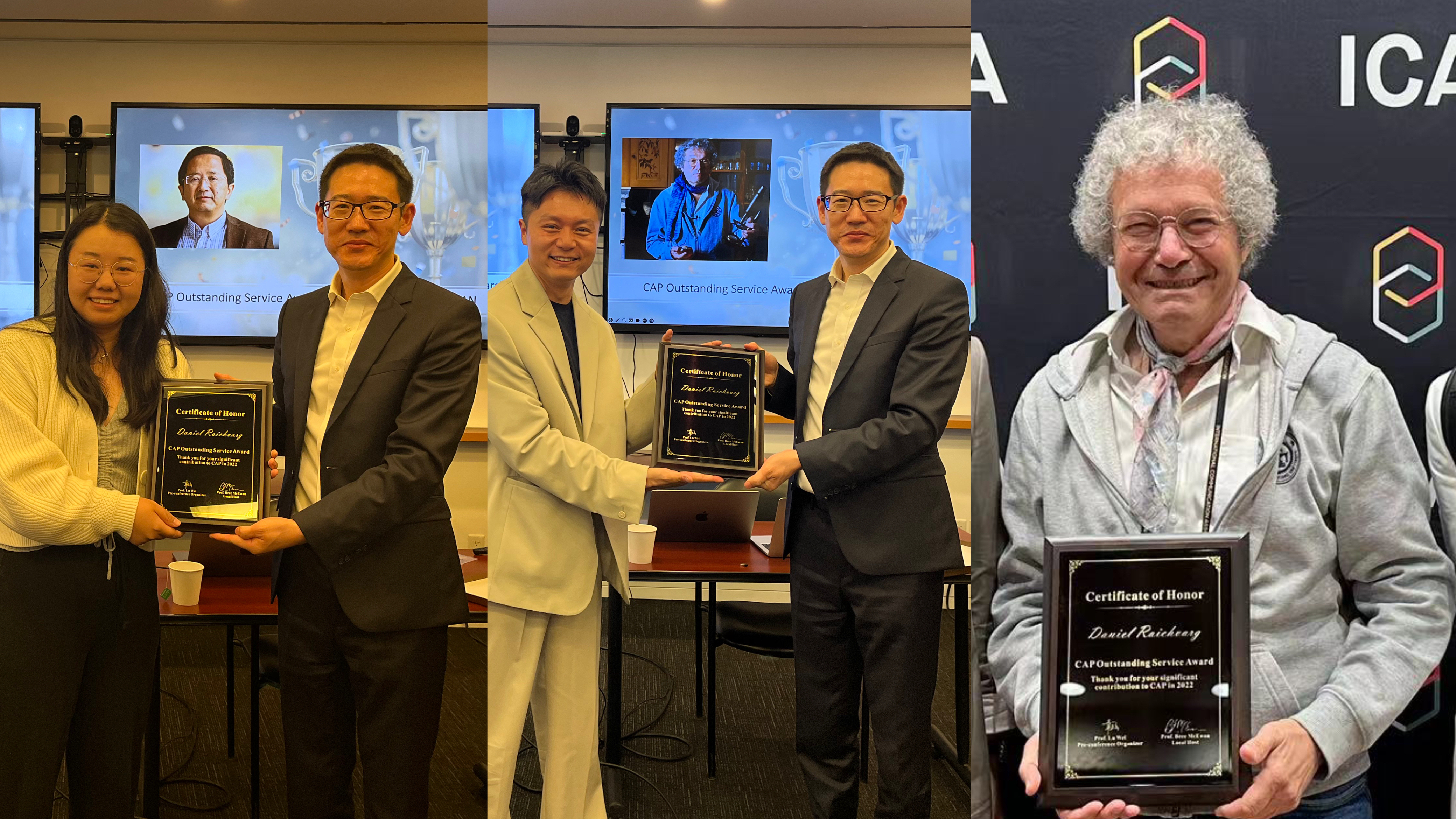 At the end of the conference, Prof. Zhao Alexandre Huang of Université Paris Nanterre hosted an award ceremony to honor three distinguished scholars who have made unique contributions to the journal Communication and the Public – Prof. Pan Zhongdang from the University of Wisconsin, Prof. Yang Guobin from the University of Pennsylvania, and Prof. Daniel Raichvarg from the University of Burgundy. The three professors virtually shared their experiences with the journal and offered their best wishes for the journal. Dean Lu Wei then presented the awards to the representatives of the award winners.
